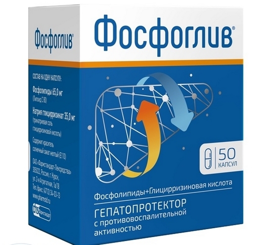На данный момент Фосфоглив является самым назначаемым врачами препаратом для профилактики и лечения заболеваний печени. Препарат выгодно отличается своим действием и свойствами благодаря двойному составу: глицирризиновой кислоте в сочетании с фосфолипидами (главным компонентом которых является фосфадитилхолин). Активные вещества взаимно усиливают действие друг друга. Глицирризиновая кислота обладает доказанным противовоспалительным и противовирусным действием, – то есть она борется с причиной гибели клеток печени, а фосфолипиды, о которых мы говорили выше и также входящих в состав Фосфоглива – помогают восстановить поврежденные участки клеточной стенки.